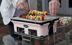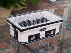- FEATURES: Genuine Japanese table barbeque | Handmade clay construction | Adjustable ventilation | Chrome cooking grill | Internal charcoal grates| This charcoal BBQ grill has been specially designed to be used on a tabletop.