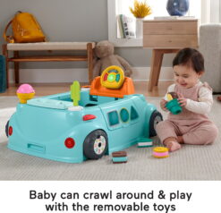 - 5 removable play pieces for shape-sorting and role-play, plus a removable seat with machine-washable seat pad
