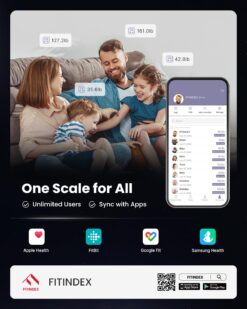 - [Unlimited Users] The FITINDEX app allows you to create more than 30 user profiles, managing each user’s data individually. It enables data sharing with Apple Health, Google Fit, Fitbit, and Samsung Health, and is compatible with Apple Watch. The digital BMI scale and body fat analyzer help you conveniently monitor your physical condition.