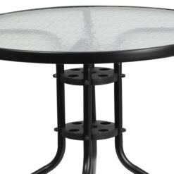 Flash Furniture 31.5” Round Glass Metal Table with 4 Black Metal Aluminum Slat Stack Chairs