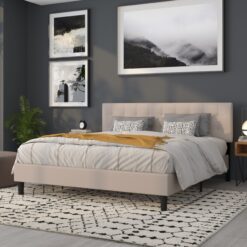 Flash Furniture Bedford Tufted Upholstered King Size Headboard in Beige Fabric
