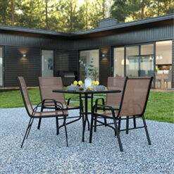 Flash Furniture Brazos Series 5-Piece Steel Glass Patio Table and Chair Set, Brown