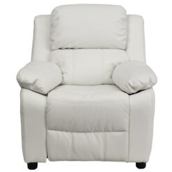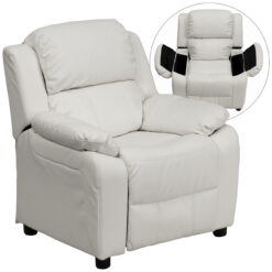 Flash Furniture Deluxe Padded Contemporary White Vinyl Kids Recliner with Storage Arms