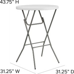 - Petite tables add that little extra table top space, and can create a perfect area for crafts, working on projects or entertaining. This 32″ round bar height folding table seats up to 3 adults and the legs fold for easy transport and storage.