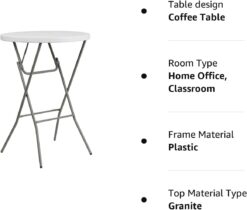 Flash Furniture Elon 2.6-Foot Round Granite White Plastic Bar Height Folding Table