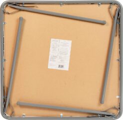 - Portable design with collapsible powder coated legs; Supports up to 130 lb. distributed weight; Stores away when not in use