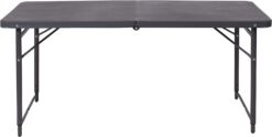 - 1.25″ thick dark gray table top, waterproof, impact and stain resistant top – gray powder coated locking legs – non-marring floor caps