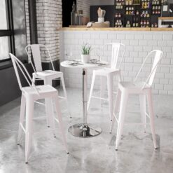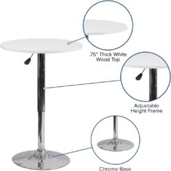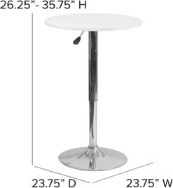 Flash Furniture Pearl 23.75” Round Adjustable Height White Wood Table (Adjustable Range 26.25” – 35.75”)