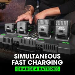- 50% FASTER CHARGING – Fully charges in half the time* *As compared to competitor’s standard 150W charger and 5.0Ah battery