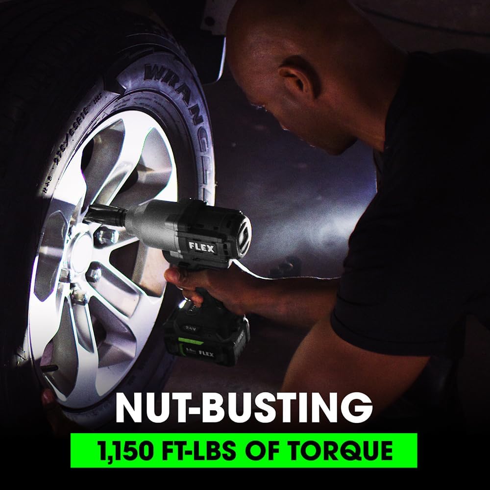 FLEX 24V Brushless Cordless 1/2-Inch 1,150 Ft-Lbs High Torque Impact Wrench Kit with 5.0Ah Lithium Battery and 160W Fast Charger – FX1471-1C