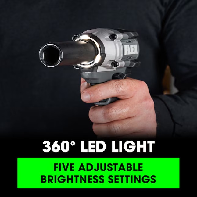 The FLEX 24V 1/2” Compact Impact Wrench packs big power into a compact size so you can power through the day with a lightweight, durable tool built to conquer hard-to-reach spaces. This compact cordless impact wrench is 38 percent lighter than its larger counterpart, FX1451, and an ideal tool for automotive and framing applications. This powerful 1/2-inch impact wrench delivers 300 foot-pounds of fastening torque and 450 foot-pounds of nut-busting torque for demanding jobs. When tightening or loosening bolts and lug nuts, Bolt Auto Stop Mode prevents over-tightening, breaking, or stripping the bolt while Bolt Removal Mode stops the tool when it senses the bolt is loosened. Screw Mode delivers faster speed for wood-driving applications like driving SDS screws into pine or LVL. Its 360-degree LED lights up dark areas with five adjustable brightness settings. The ergonomic design and soft-grip handle paired with a variable speed trigger deliver ideal balance, comfort, and total control. This compact impact wrench delivers the FLEX Advantage of unmatched battery power, runtime, and fast charging (battery and charger sold separately). It’s all protected by the FLEX Limited Lifetime Warranty when registered within 30 days of purchase at registermyFLEX.com through December 31, 2024.