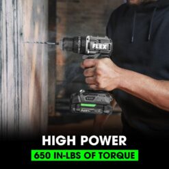 FLEX 24V Brushless Cordless 1/2-Inch 650 In-Lbs Torque 2-Speed Compact Hammer Drill Kit with 2.5Ah Lithium Battery and 160W Fast Charger – FX1231-1A