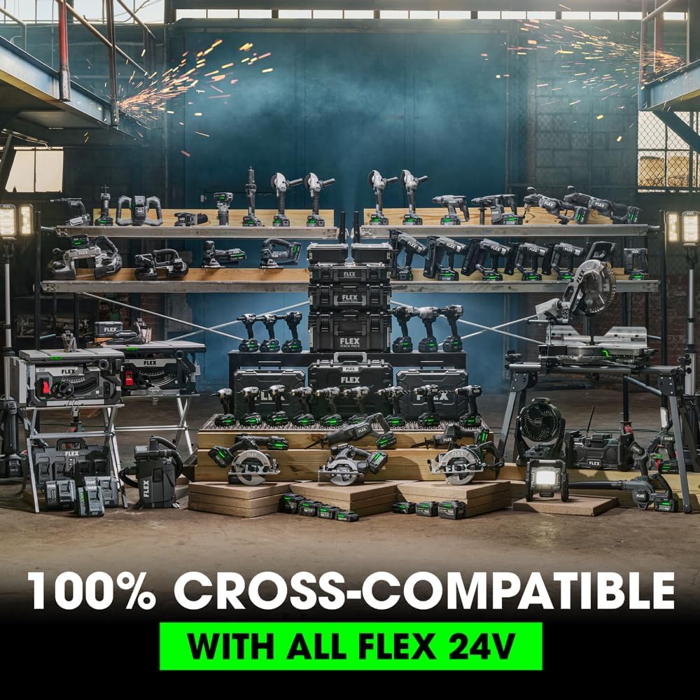 - FLEX 24V CROSS-COMPATIBILITY – Compatible with all FLEX 24V batteries, chargers, and tools (batteries and chargers sold separately)
