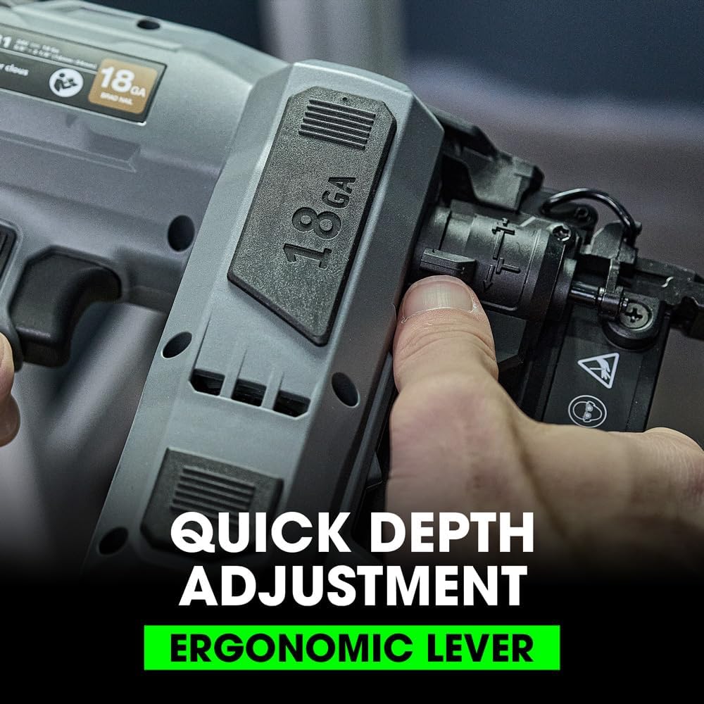 - QUICK DEPTH ADJUSTMENT LEVER – Ergonomic lever easily sets ideal nailing depth