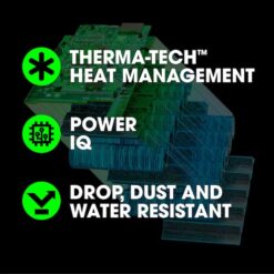 - THERMA-TECHâ„¢ HEAT MANAGEMENT – Innovative cooling system minimizes heat for 25% longer runtime