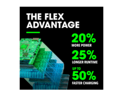 - THE FLEX ADVANTAGE – 20% more power with 24V lithium, 25% longer runtime with THERMA-TECH™ heat management, up to 50% faster charging with high-power, dual fan chargers
