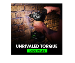 The FLEX FX1271T-2B 24V Brushless 1/2-in 2-Speed Hammer Drill with Turbo Mode delivers 1,400 in-lbs torque.