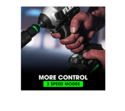 Enjoy total control with three speed modes. This impact driver dominates with the FLEX Stacked Lithium Advantage: unmatched battery power, runtime, and charging capability.