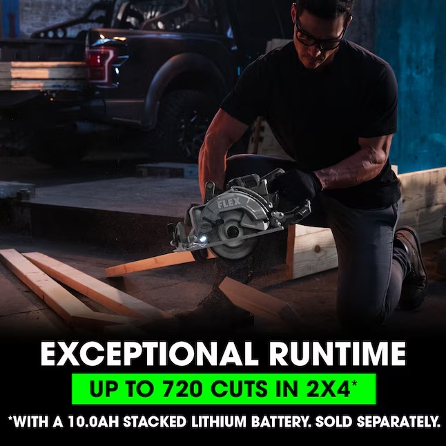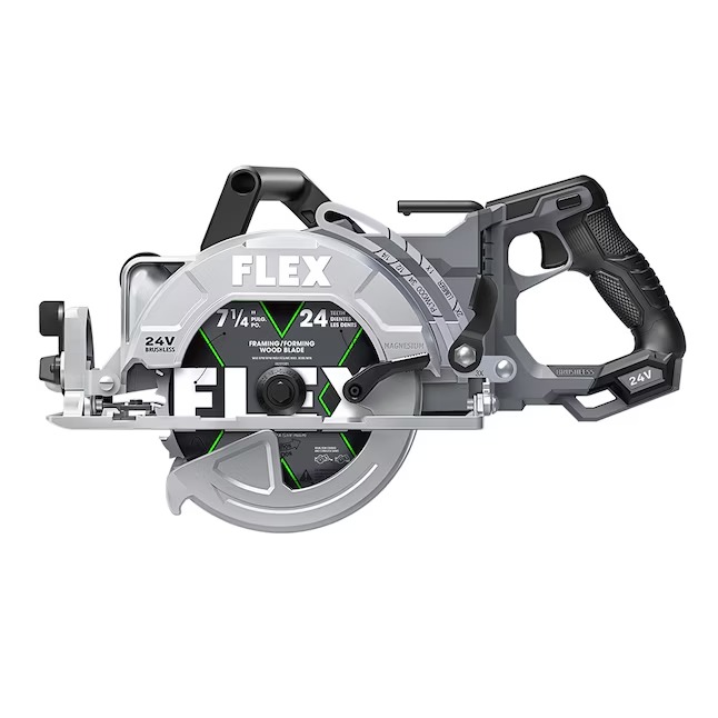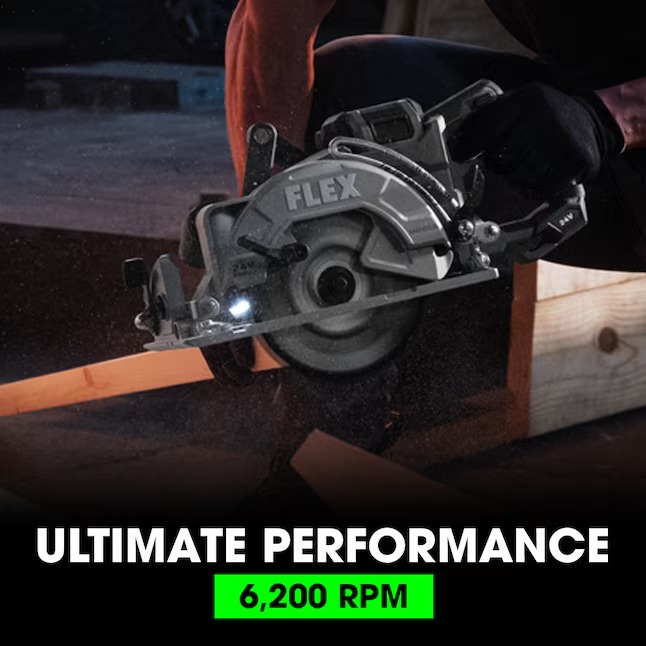 Rip through miles of 2x4s with the FLEX 24V 7-1/4″ Rear Handle Circular Saw. Both lightweight and durable, this precision cutting tool is a control freak, positioning the blade to the left of the motor and placing the handle at the rear to optimize line of sight. Built for advanced cutting performance and ultimate cutting capacity (up to 2-5/8 inches). Built-in LED light illuminates workpiece providing superior precision and accurate cuts. This saw’s powerful motor is maximized by the FLEX Stacked Lithium Advantage of unmatched 24V battery power, runtime, and fast charging (battery and charger sold separately). Protected by the FLEX Limited Lifetime Warranty when registered within 30 days of purchase at registermyFLEX.com through December 31, 2024.