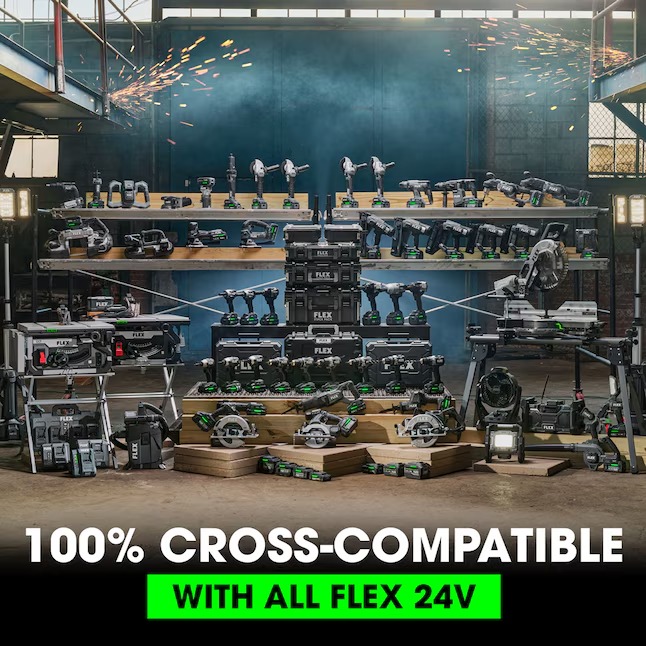- FLEX 24V CROSS-COMPATIBILITY – Compatible with all FLEX 24V batteries, chargers, and tools (batteries and chargers sold separately)