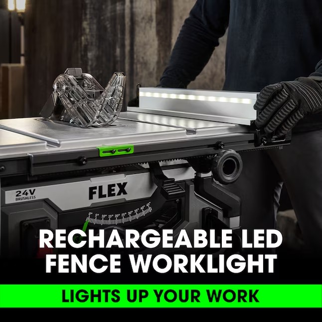 - RECHARGEABLE LED FENCE WORKLIGHT – Lights up your work when cutting; removable for added lighting versatility around the jobsite and rechargeable via USB-C