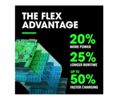 - THE FLEX ADVANTAGE – 20% more power with 24V lithium, 25% longer runtime with THERMA-TECH™ heat management, up to 50% faster charging with high-power, dual fan chargers