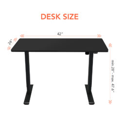 Electric Height Adjustable 42″x24″ Whole-piece Desktop Standard Up&Down 2-Button Controller 154 lbs Weight Capacity 28″-47.6″ Quick & Smooth Adjustments Black Desk Frame and Black Desktop