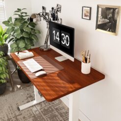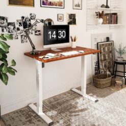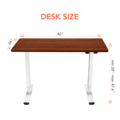 Electric Height Adjustable 42″x24″ Whole-piece Desktop Standard Up&Down 2-Button Controller 154 lbs Weight Capacity 28″-47.6″ Quick & Smooth Adjustments White Desk Frame and Mahogany Desktop