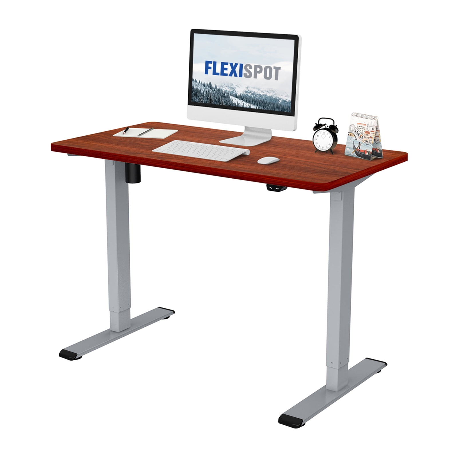 Electric Height Adjustable 42″x24″ Whole-piece Desktop Standard Up&Down 2-Button Controller 154 lbs Weight Capacity 28″-47.6″ Quick & Smooth Adjustments Gray Desk Frame and Mahogany Desktop