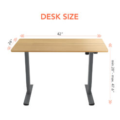 Electric Height Adjustable 42″x24″ Whole-piece Desktop Standard Up&Down 2-Button Controller 154 lbs Weight Capacity 28″-47.6″ Quick & Smooth Adjustments Gray Desk Frame and Maple Desktop