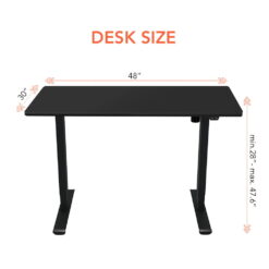 Electric Height Adjustable 48″x30″ Whole-piece Desktop Standard Up&Down 2-Button Controller 154 lbs Weight Capacity 28″-47.6″ Quick & Smooth Adjustments Black Desk Frame and Black Desktop
