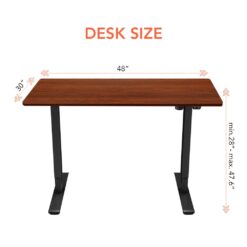 Electric Height Adjustable 48″x30″ Whole-piece Desktop Standard Up&Down 2-Button Controller 154 lbs Weight Capacity 28″-47.6″ Quick & Smooth Adjustments Black Desk Frame and Mahogany Desktop
