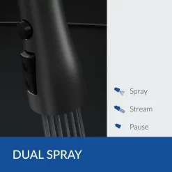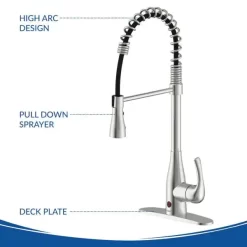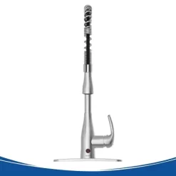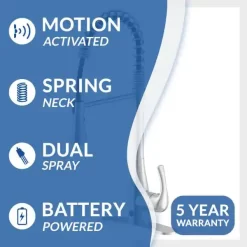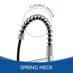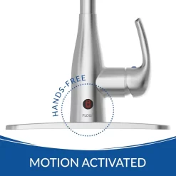 Enjoy the latest in kitchen faucet technology with the Flow Spring Neck Single-Handle Pull-Down faucet. The hands-free motion sensing technology makes washing up quicker and more sanitary. Set the temperature and use the sensor to control the water flow. The built-in timer automatically turns the water flow off after 3 minutes. Retracting the faucet’s pull-down hose head after use will also automatically shut off water flow. The simple and easy installation does not require any hard wiring but features a quick insertion method installation. Since it is not hardwired, it can function normally even during a power outage.
