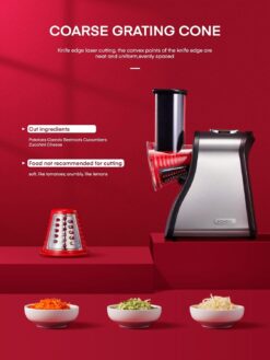 FOHERE Electric Cheese Grater Salad Maker, Electric Slicer Shredder for Home Kitchen Use, One-Touch Easy Control, Electric Grater for Vegetables, Cheeses and Nuts, BPA-Free, Red