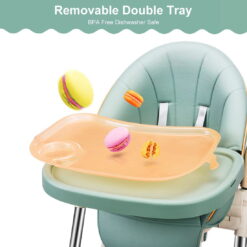 - 【Easy Cleaning Job for All】 BPA-free double tray is adjustable to set up a suitable dining distance for your baby, the upper tray can be removed for dishwasher cleaning, PU seat surface can be easily wiped with a wet cloth, more convenient for busy parents