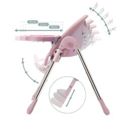 【5-in-1 High Chairs for Babies】 5 Adjustable backrest positions (from 100° to 140°), 5 convertible seat heights (24.4-30.7 inch), 3 adjustable tray/ footrest positions, babies and toddlers playing, eating, relaxing, reclining or nap on the high chair any time any where