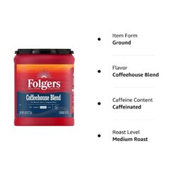 Folgers Coffeehouse Blend is a perfectly balanced, medium-dark roast coffee you can enjoy right at home. Its distinct taste that starts smooth and finishes bold is specially crafted to drink on its own or with sugar, cream, or whatever else you like to add. With Folgers Coffeehouse Blend ground coffee you can explore alternative brewing methods such as, French press, cold brew and brew over ice. We invite you to discover a new style and continue enjoying a smooth and bold taste.