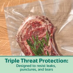 Ensure the longevity and freshness of your foods with FoodSaver Heavy Duty Vacuum Seal Bags. Developed to defy the usual, these bags are 30% thicker than standard FoodSaver vacuum seal bags and provide tri-fold protection against leaks, punctures, and tears. Offering the smart choice for thoughtful households, these bags help your food to stay fresh up to 5x longer, compared to traditional storage methods reducing waste, and saving money. These versatile, BPA-Free bags are safe for the microwave, ideal for sous vide cooking, and for overall storage needs from pantry to freezer.