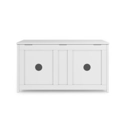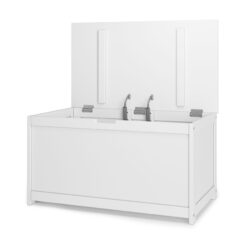 - Two safety hinges on lid allows for a soft-close to help protect little fingers