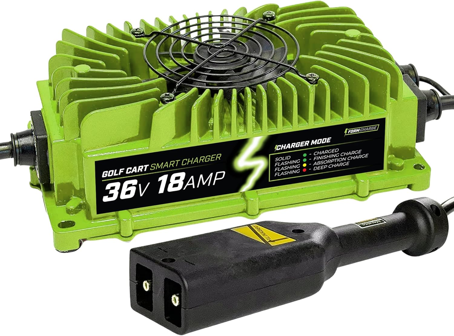 FORM 36 Volt Battery Charger with D Style Plug for EZGO TXT Golf Cart – 36V 18AMP LiFePO4, Lead Acid (Lithium/Lead Acid D-Style Plug)