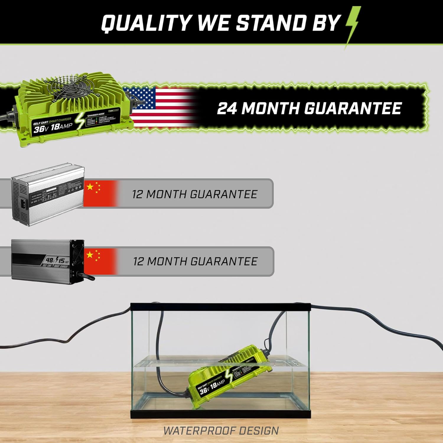 - 18Amp Rapid Lead Acid Battery Charger – Charges 36 volt EZGO TXT electric golf carts with the Powerwise “D” style plug. Plug and forget 7-stage smart charging technology (E-Z-GO, EZ-GO, EZ GO)