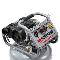 This FORTRESS® Ultra Quiet Air Compressor is made with a dual-piston, brushless, 4-pole induction motor that reduces heat and friction for up to 2x longer pump life.* The lightweight aluminum tank means this compressor is up to 20% lighter* than other compressors in its class. The high-pressure tank delivers an air flow of 2.7 SCFM @ 90 PSI with a max pressure of 150 PSI for longer runtime.