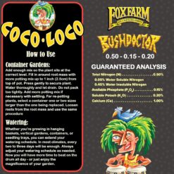 FoxFarm Bush Doctor Coco Loco Potting Mix is a triple washed for low salt content and holds properties that will not require water as often as your usual potting mix. Whether you’re growing in hanging baskets, vertical gardens, containers, or seedling trays, you’re guaranteed to extend your watering schedule with the help of this potting mix. In most climates, every two to three days will be enough. Always adjust your watering schedule as needed. Coconut coir is produced from coconut husks as a natural by-product of coconut harvestings, making it one of nature’s most abundant renewable resources. The coir in Coco Loco behaves like little sponges making water available as needed by the plants. Lower humidity reduces the chances of attracting mold and prevents insects from bothering your potted plants. It resists compaction, easily rewets, and absorbs evenly for superior aeration and maximum drainage at the root zone. Plants don’t lie; our Coco Loco is the best potting medium you will ever use. Available in a 2-cubic foot bag.