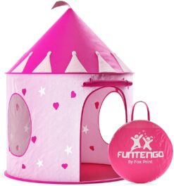 FoxPrint Princess Castle Play Tent With Glow In The Dark Stars, Conveniently Folds In To A Carrying Case, Your Kids Will Enjoy This Foldable Pop Up Pink Play Tent/House Toy For Indoor and Outdoor Use.