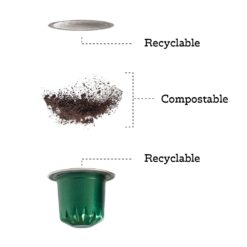 - Our commitment to sustainability goes beyond the coffee itself. Our coffee pods feature a recyclable aluminum cup and lid, as well as recyclable packaging. The coffee grounds are home compostable allowing for a totally waste-free experience.