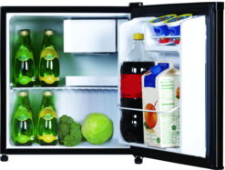 - 1.35 cu. ft. fresh food compartment and .25 cu. ft. freezer compartment allow for additional storage of fresh food and frozen goods.