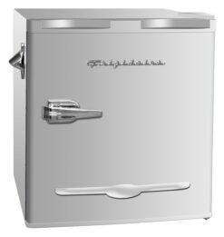 Frigidaire brings you the best retro compact refrigerators for any budget. The 1.6 cu. ft. retro design refrigerator with built-in side bottle opener has enough room to store your favorite foods and drinks, while not taking up a lot of space. The convenient door basket on the reversible door is large enough for 2 l bottles and canned drinks. This low energy consumption refrigerator is perfect for the office or extra rooms away from the kitchen with its space saving flush back design.