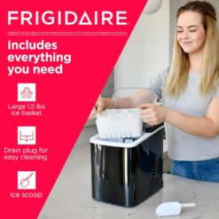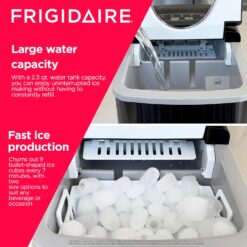 - SLEEK DESIGN: Never run out of ice again with the Frigidaire Stainless Steel Ice Maker that produces up to 26 lbs. of ice per day. Elevate your space with its sleek stainless steel countertop design that blends seamlessly with any kitchen, bar, office, or dorm.