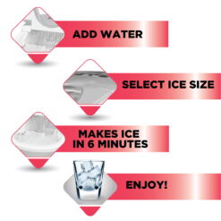 Always have fresh ice on hand with the superior ice-making abilities of the Frigidaire Counter Top Ice Maker! Designed to make 26 pounds of ice in 2 different sizes, this handy countertop appliance is sleek and compact and can store 1.5 pounds so you can easily, the Frigidaire Counter Top Ice Maker is ideal for use all year round, for large parities, or for use in a dorm room!