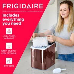 - Frigidaire Copper Stainless Steel Ice maker – produces 26 pounds of ice per day – and ice in as little as 6 minutes